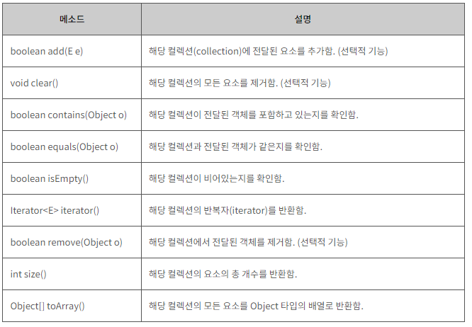 ※ Collection 인터페이스에 선언된 메서드